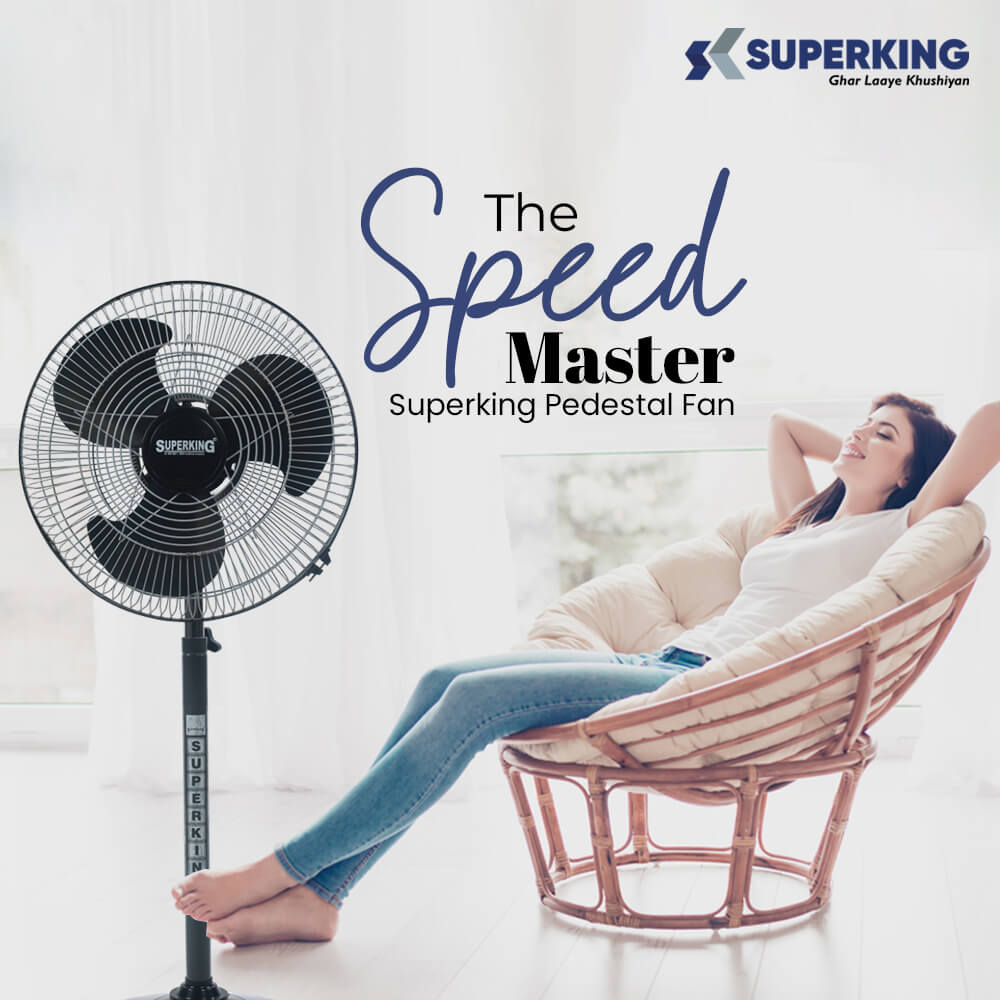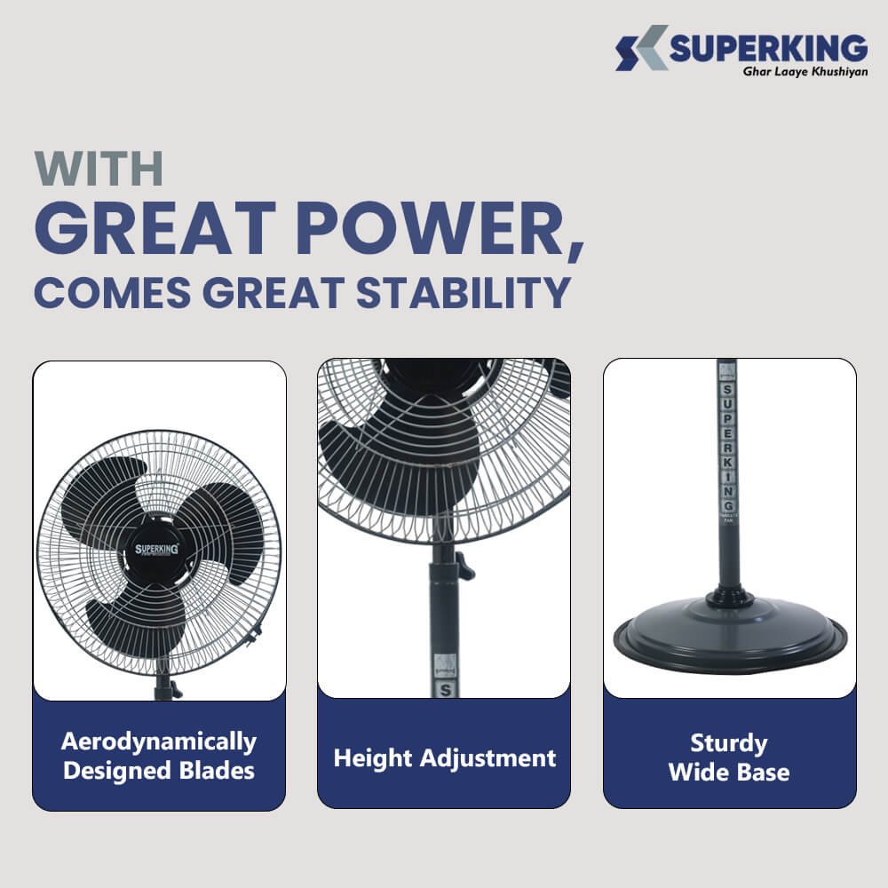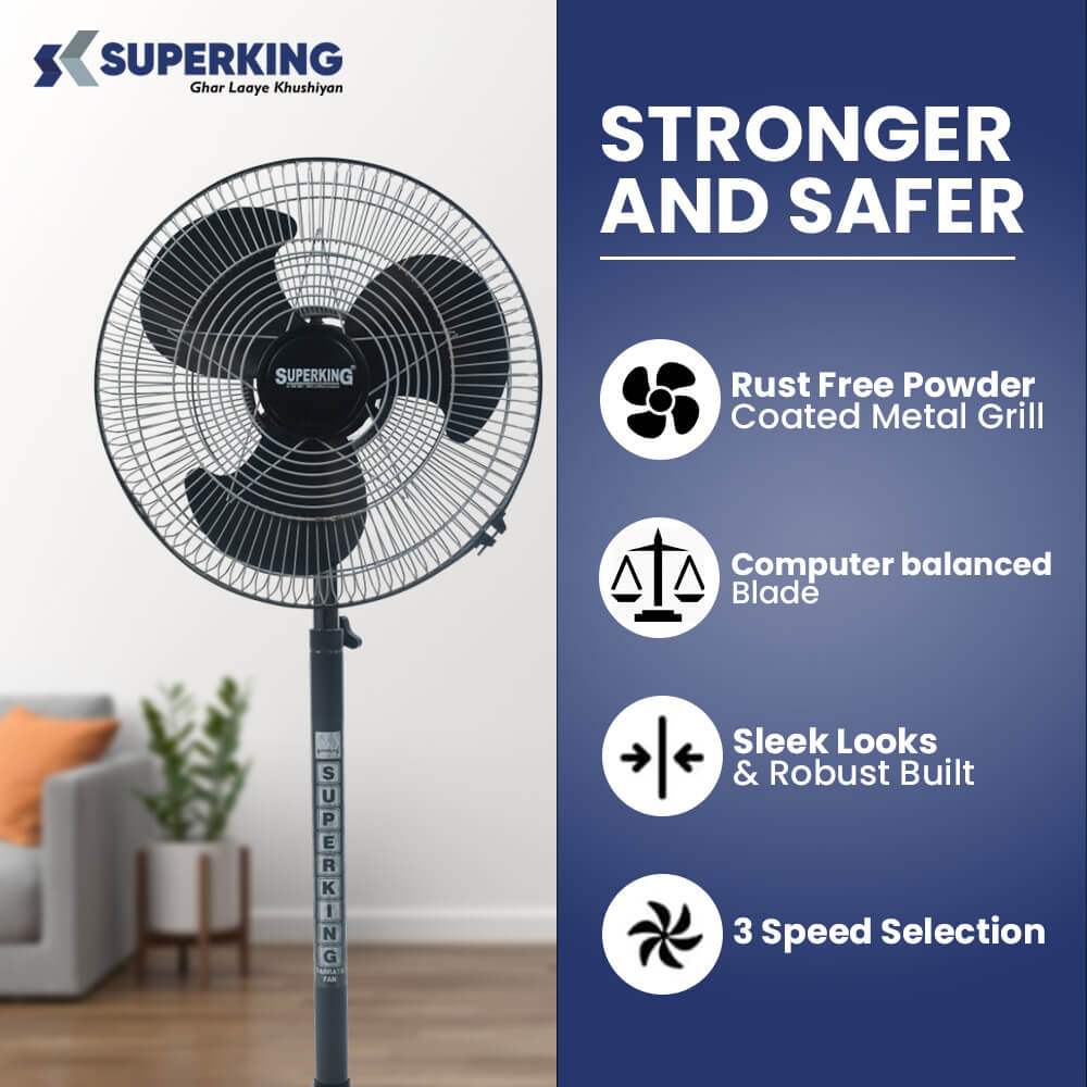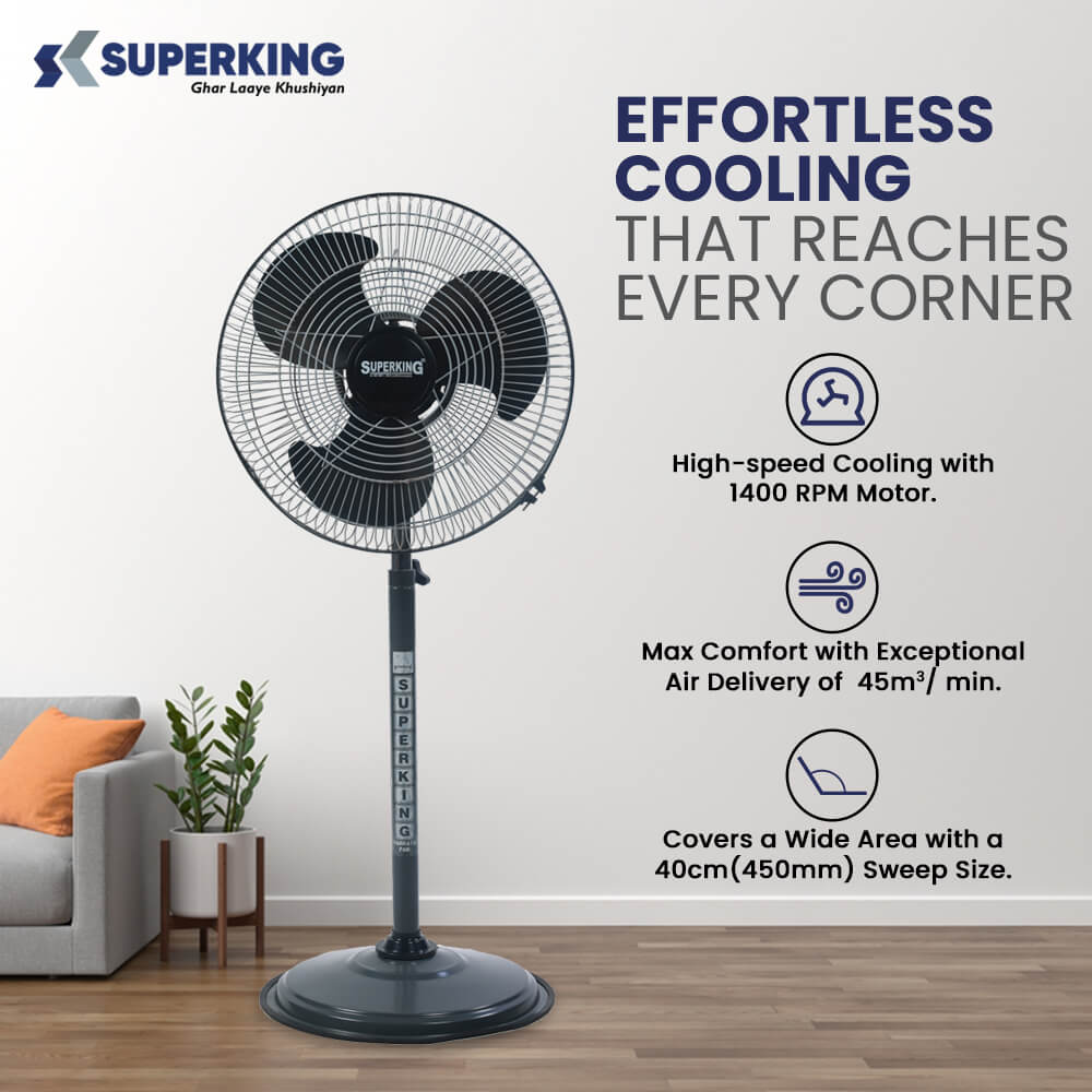 Superking HighSpeed Gol 3 450 mm Pedestal Fan (Black)