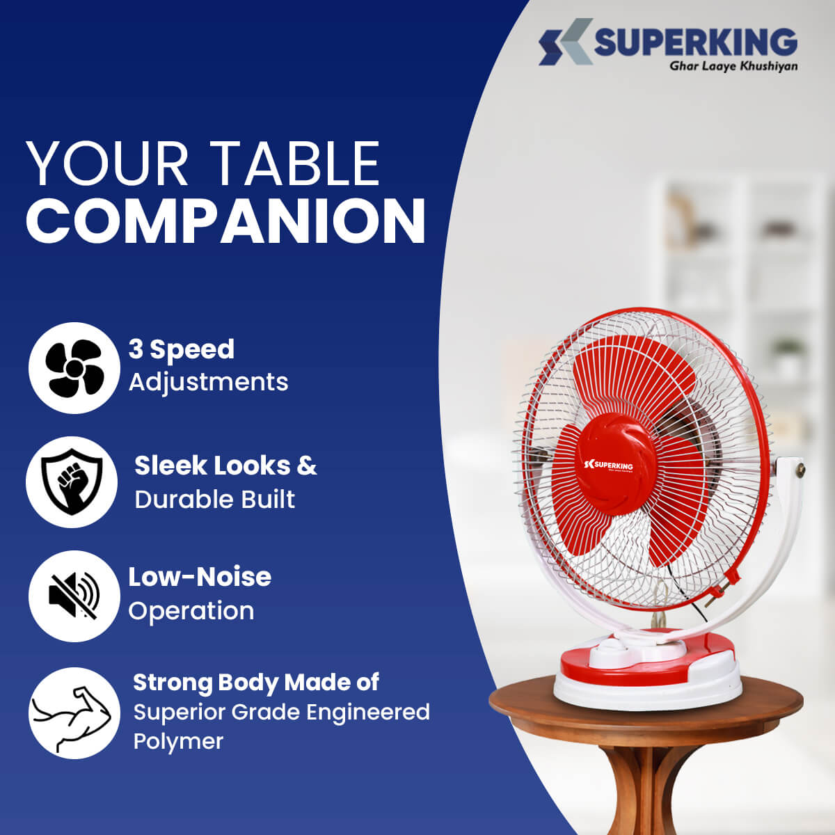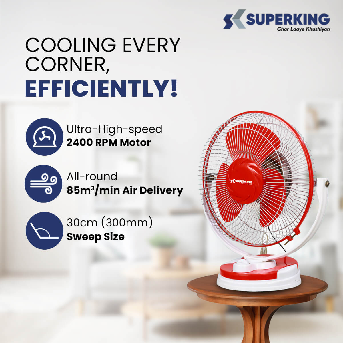 Superking Mini Table Fan 300MM Table Fan (Red)