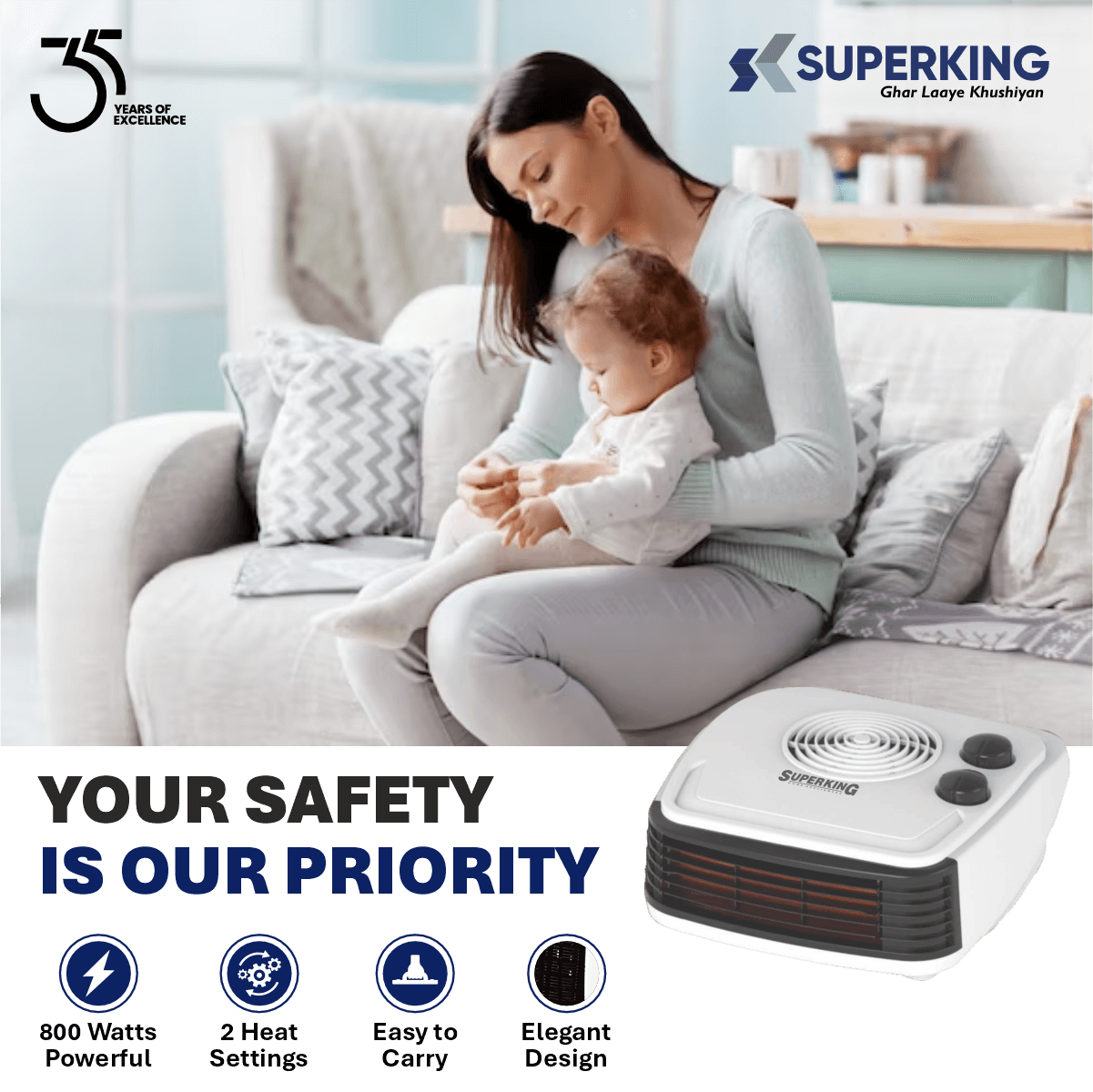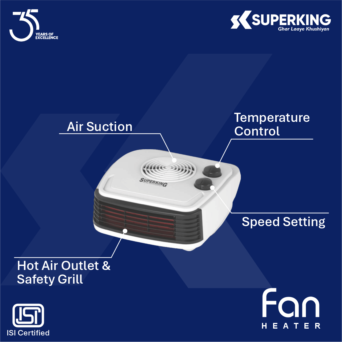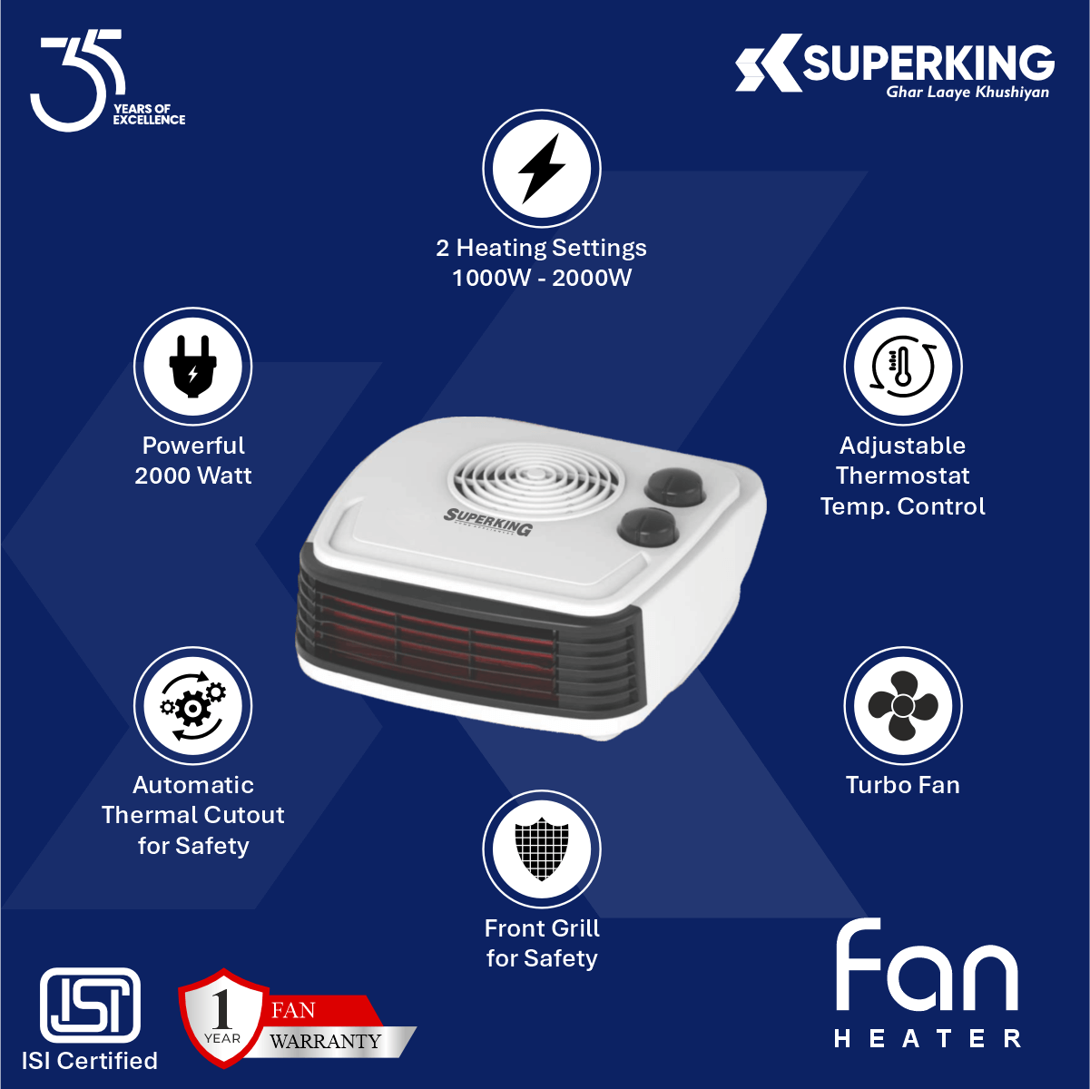 Superking Fan Heater 2000/1000 W Fan Room Heater With ISI Approved ( White)