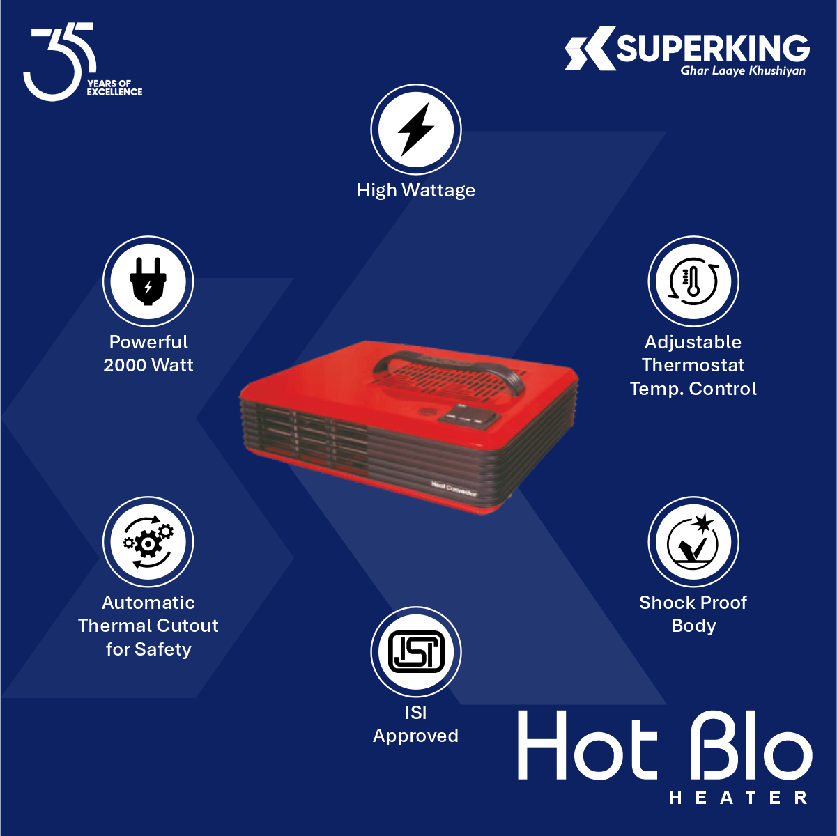 Superking Hot Blow 2000 W Red SUPER Heat Fan Room Heater