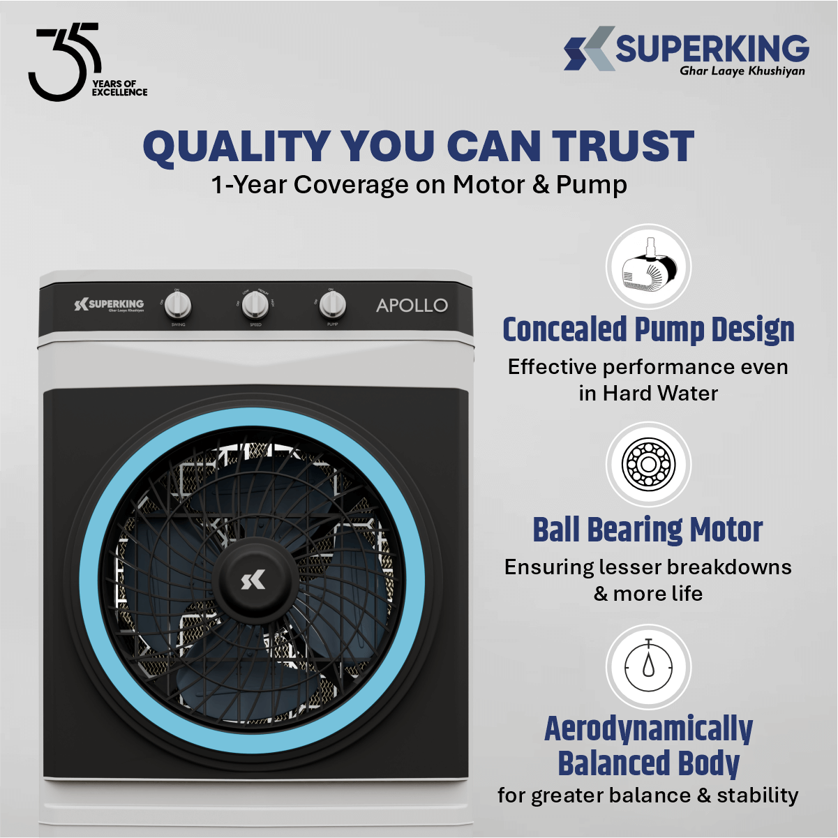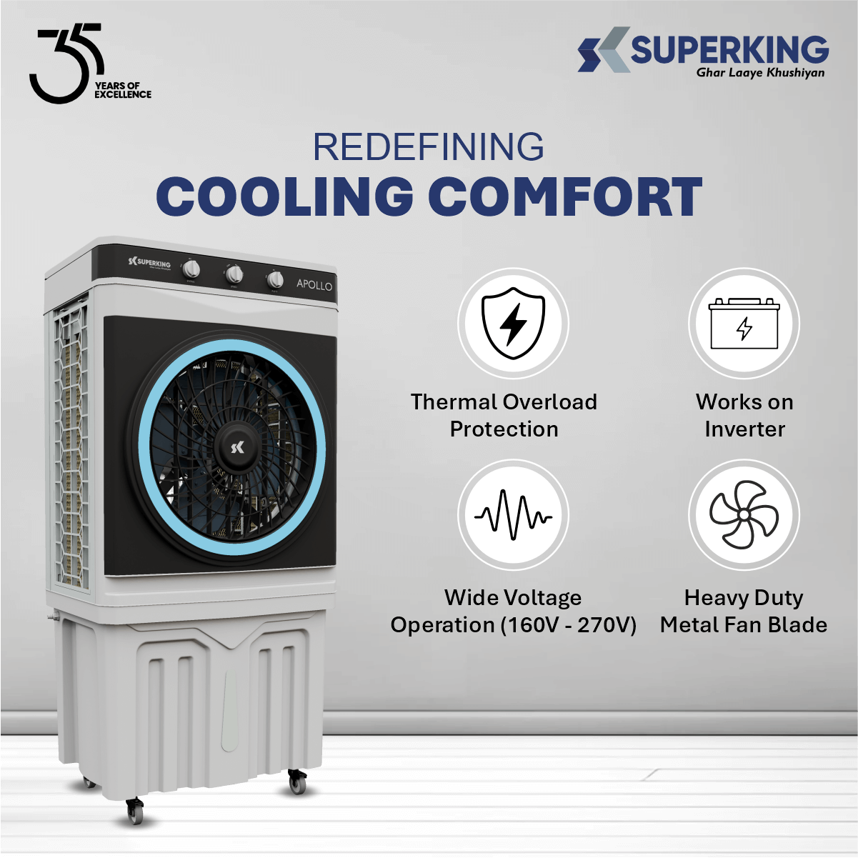 Apollo ( 90 Ltr Desert Air Cooler With Honeycomb Cooling & Auto Swing Technology)