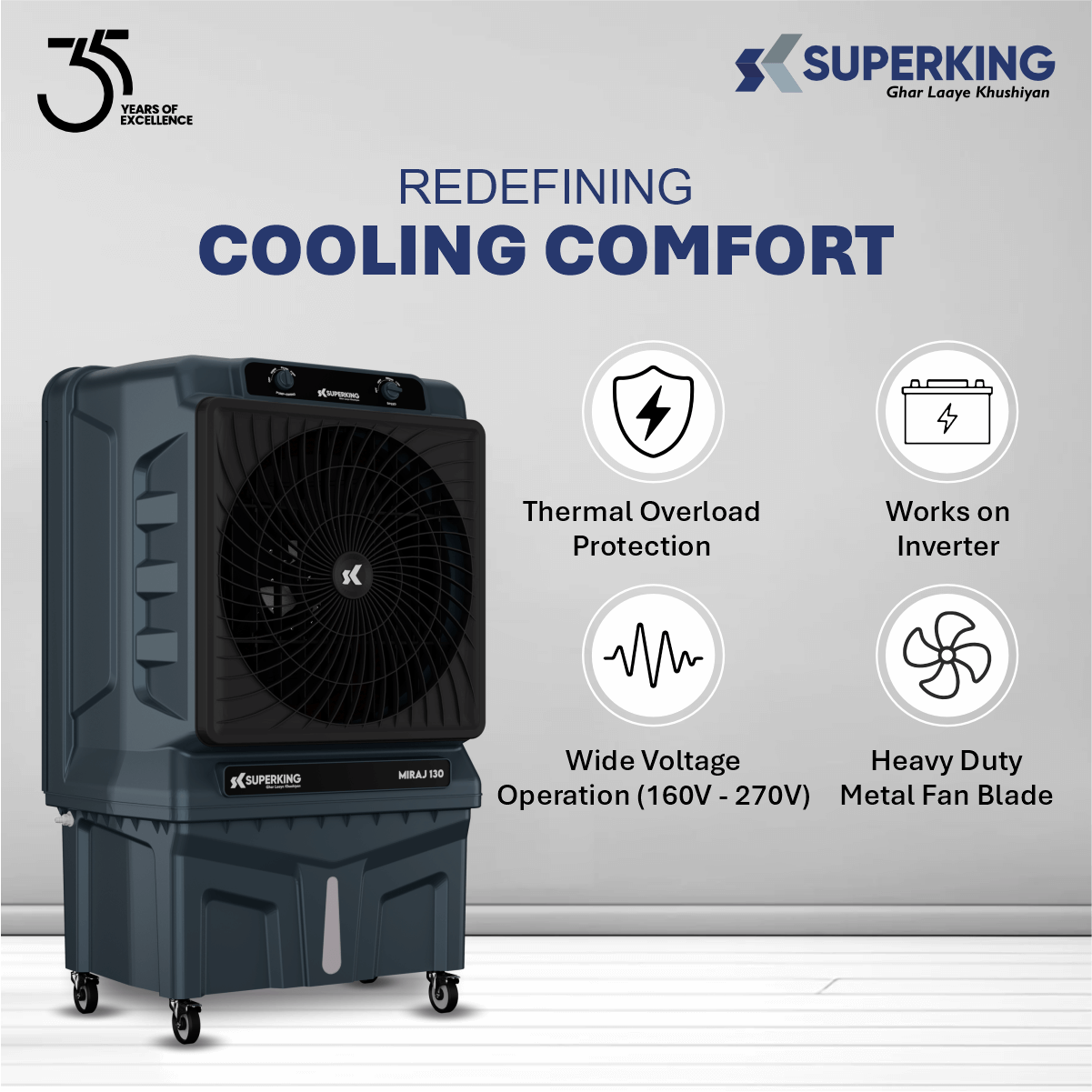 Miraj 130 ( 130 Ltr Desert Air Cooler With Honeycomb Cooling & Auto Swing Technology)