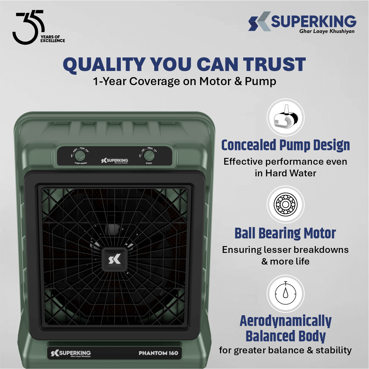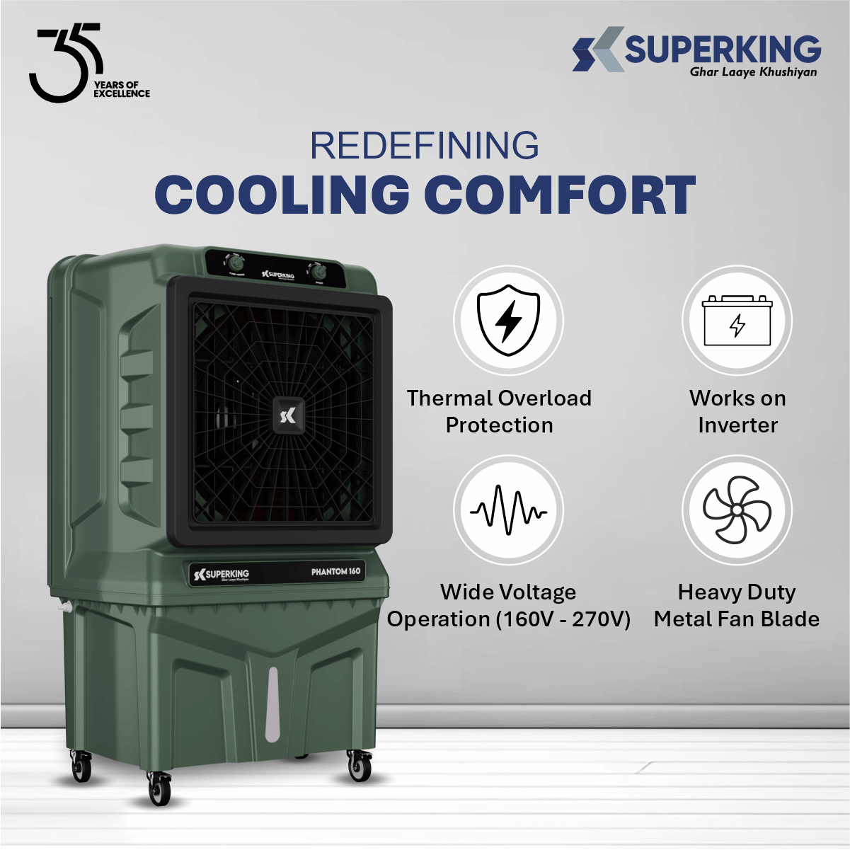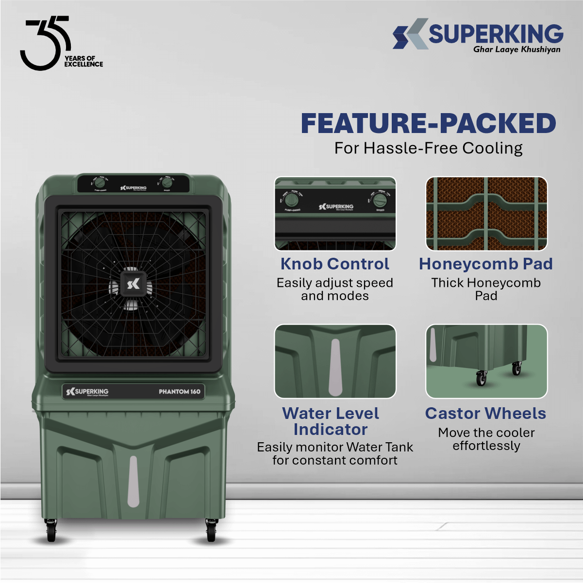 Phantom 160 ( 160 Ltr Desert Air Cooler With Honeycomb Cooling & Auto Swing Technology)