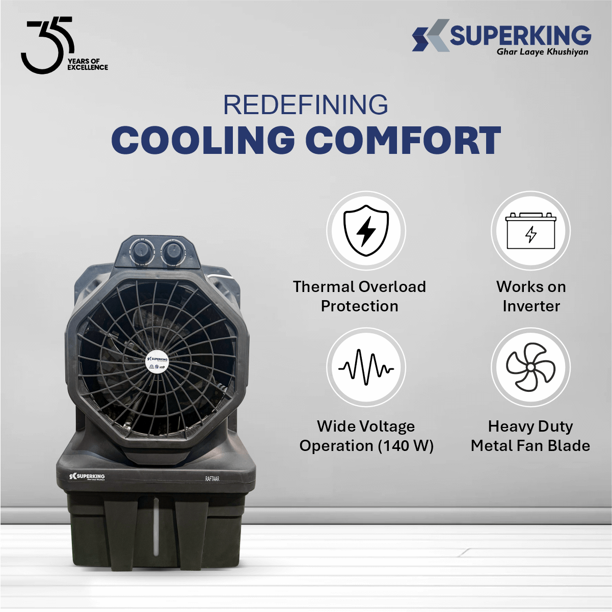 Raftaar 35 ( 35 Ltr Desert Air Cooler With Honeycomb Cooling )