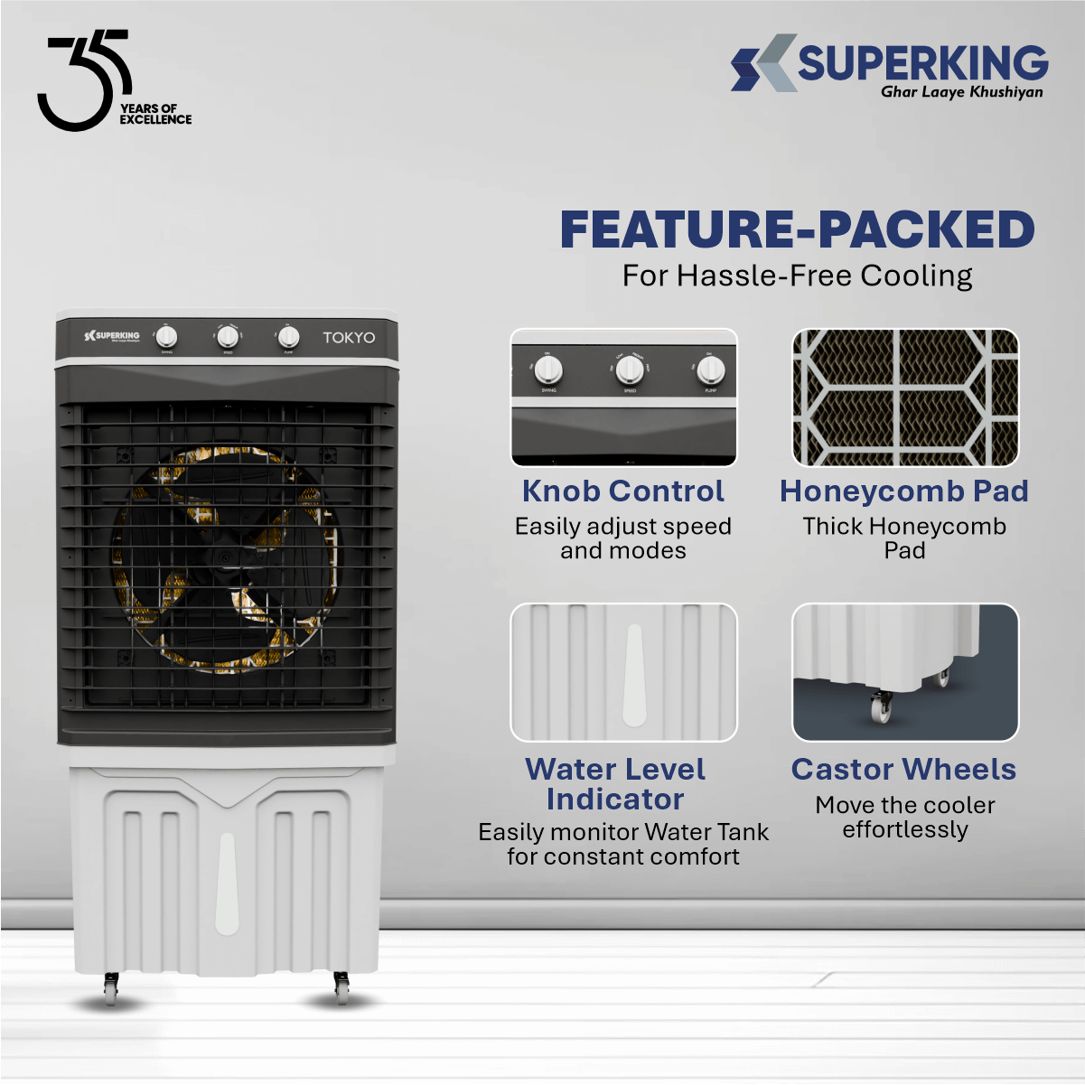 Tokyo ( 90 Ltr Desert Air Cooler With Honeycomb Cooling & Auto Swing Technology)