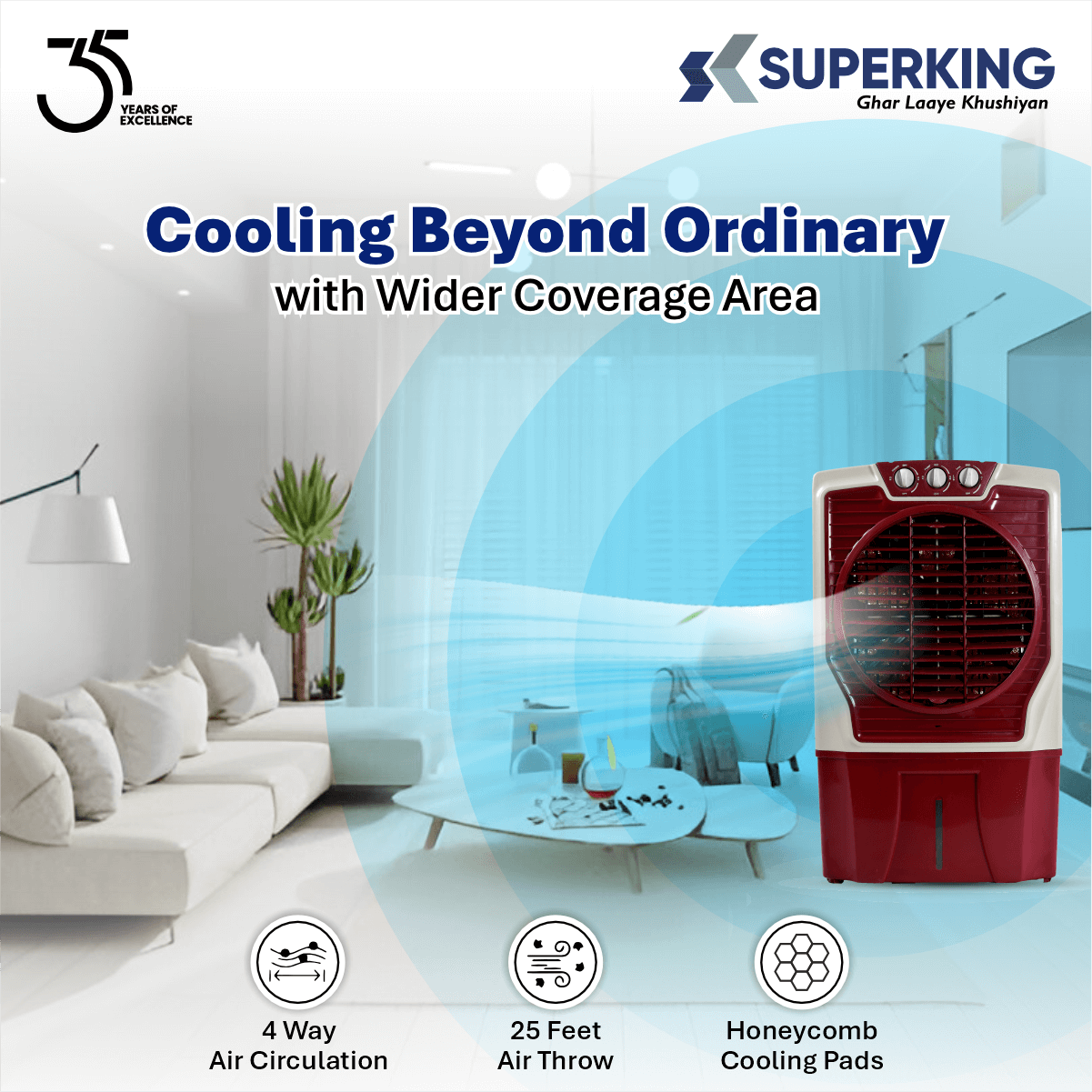 Vento 65 ( 65 Ltr Desert Air Cooler With Honeycomb Cooling & Auto Swing Technology)