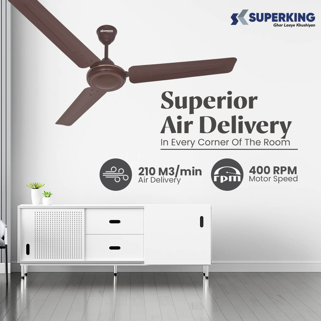 Superking Zolt Ultra High Speed 3 Blade Anti-Dust Decorative Star Rated Ceiling Fan (Pack of 1)