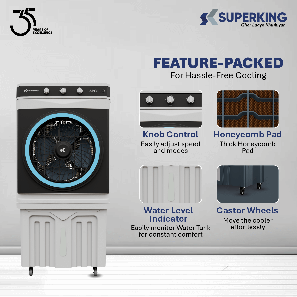 Apollo ( 90 Ltr Desert Air Cooler With Honeycomb Cooling & Auto Swing Technology)