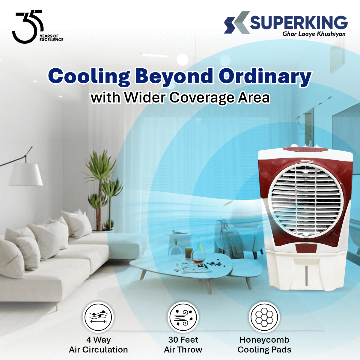 Hexa 65 ( 65 Ltr Desert Air Cooler With Honeycomb Cooling & Auto Swing Technology)