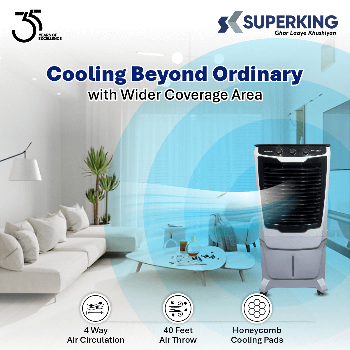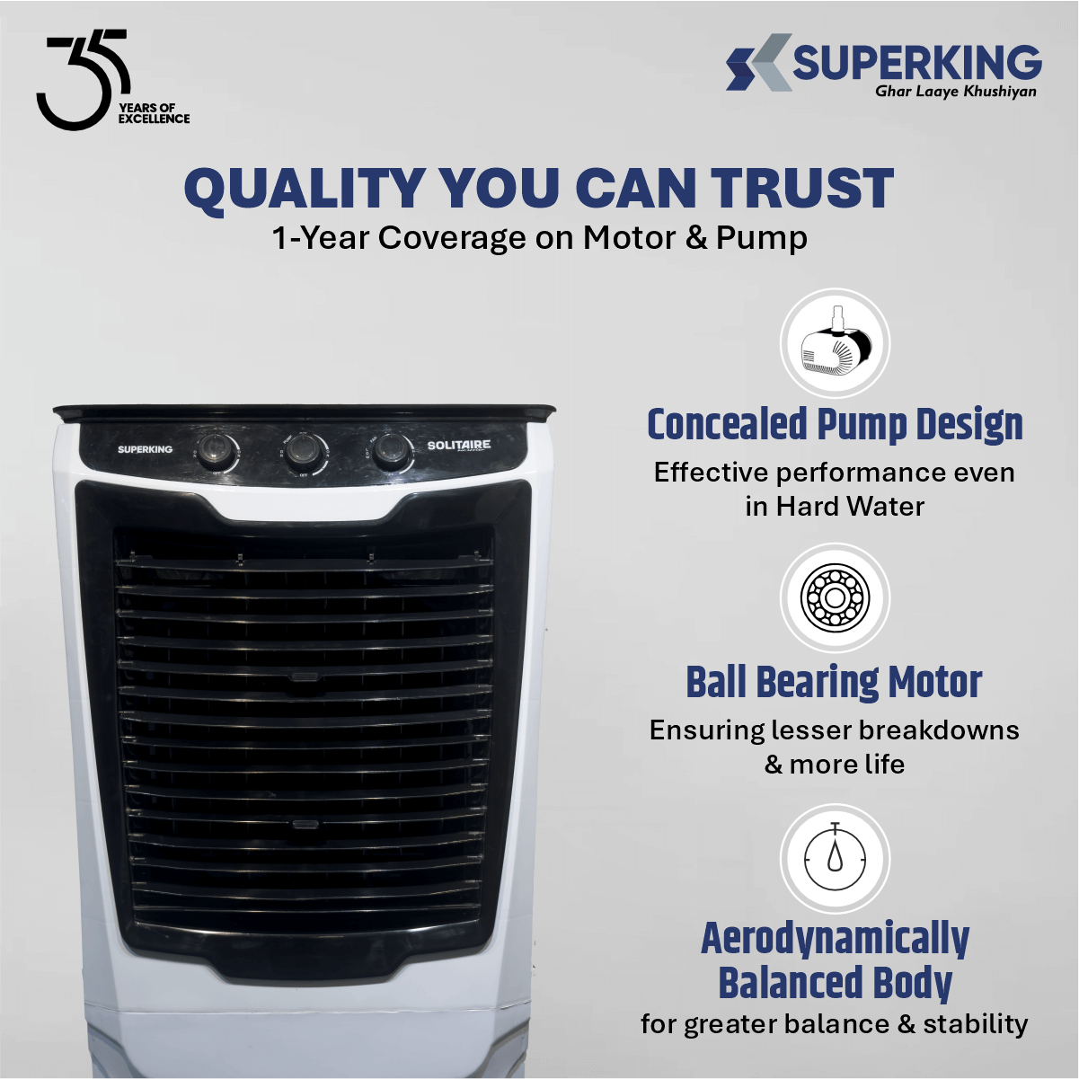 Solitaire 110 ( 110 Ltr Desert Air Cooler With Honeycomb Cooling & Auto Swing Technology)